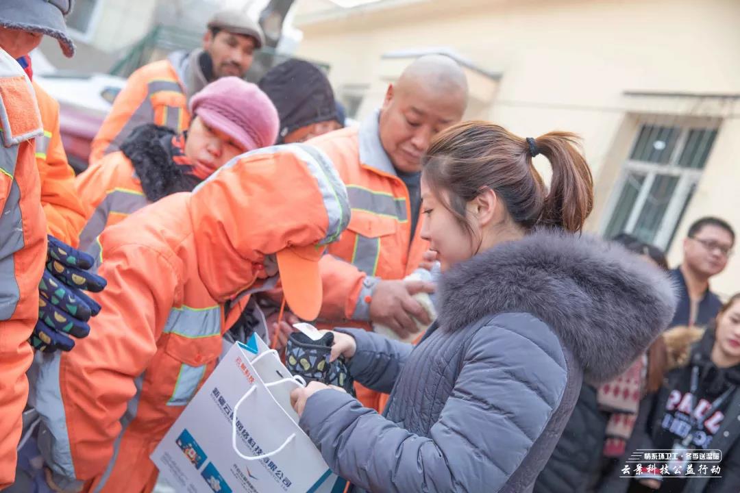 新疆云景网络科技有限公司负责人 张德瑞表示 环卫工人为了城市发展默默无闻地辛勤劳动,为生活环境的改善做出了无私奉献,我们应该给他们更多的关爱和温暖。云景科技在发展过程中一直不忘投身公益事业,我们会坚持回报社会,做一家有良心、有担当、正能量的企业。在为经济发展做出贡献的同时,也要为社会文明进步发展贡献出属于自己的力量。我们呼吁所有的市民都养成良好的卫生习惯,维护城市环境,尊重环卫工人的劳动,建设更加美丽的新疆。 八一街道城区管理科科长孙鼎对 云景科技的捐赠表示感谢 感谢对环卫工人的关心 此次活动对工作在一线的环卫工人来说,是支持,是关爱,更是鼓舞,八一街道环卫全体将继续努力工作,以优美的城市环境回报社会! 本次活动云景科技共计对284名环卫工人进行捐赠,现场环卫工人代表都表示这次的行动很暖心,非常感谢云景科技的爱心举动。 同时我们在此呼吁,不乱丢垃圾,爱护环境,从小事做起,您一个小小的举动都可以帮助环保工人降低劳作的强度,保护环境,共建和谐美好家园。